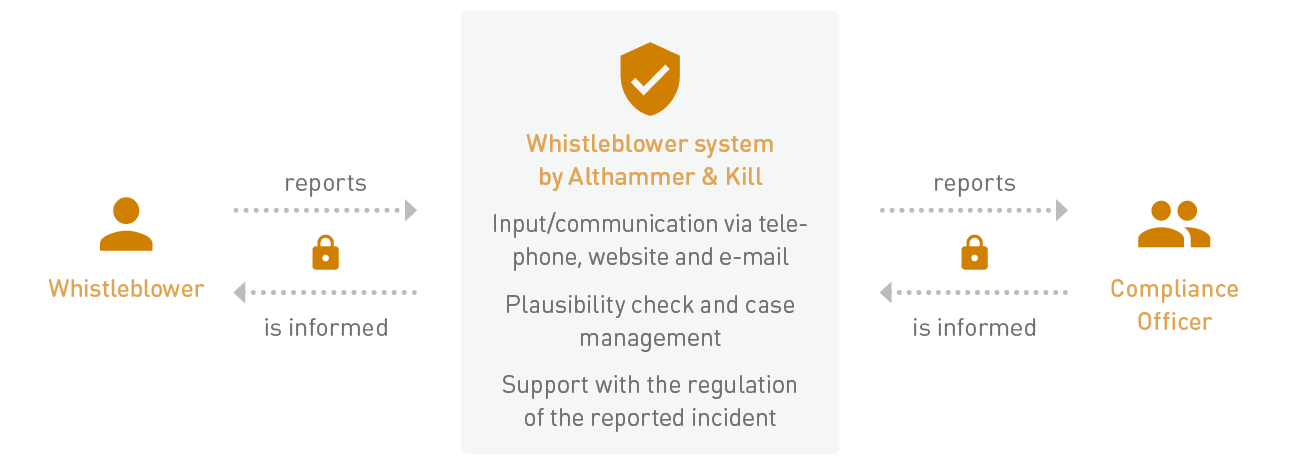 Althammer & Kill GmbH & Co. KG provides the whistleblower system. It is a compliance consulting company operating nationwide. The employees ensure that the protection of the whistleblower is guaranteed.